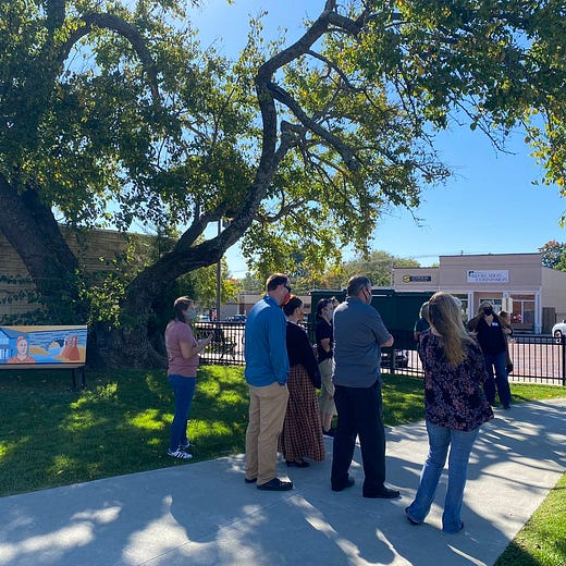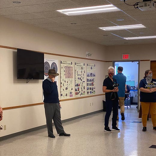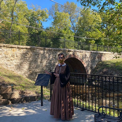 Lucy Sweet Sullivan, mayor of Baldwin City before 1900, was so pleased at the finished Sullivan Square named in her honor that she turned up in person. She even gave some guests a tour of important landmarks, including the Women’s Bridge. We hear the library has created a walking tour in her honor, available here.